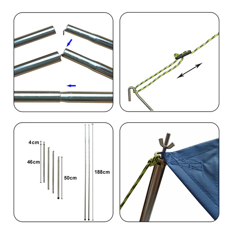 سایبان سفری دانانیک مدل SB104، یک ابزار مورد نیاز جهت کمیپنگ، سفر به شمار میرود. با توجه به فروش بالا و رضایت خریداران از سایبان سفری دانانیک مدل SB103، تلاش شد سایبان سفری دانانیک مدل SB104 با برتریهایی نسبت به مدل قبلی به بازار عرضه گردد. از جمله برتریهای این مدل نسبت به مدل قبل در به کارگیری میخهای با ضخامت و ارتفاع بیشتر، افزایش تعداد نقاط اتصال سایبان، تغییر فرم کیف حمل، استفاده از ستونهای آبکاری و سرستونهای پیچ و مهرهای، استفاده از طنابهایی با مقاومت بالاتر است. احتمالا برای شما پیش آماده برای تفریح به طبیعت رفته باشید، سایه مناسب درختی برای گذراندن روز پیدا نکرده و زیر آفتاب، روز ناخوشایندی را سپری نموده باشید. سایبان سفری دانانیک با حجم و وزن کم، گزینه مناسب برای کمپینگ و سفر است تا شما را در مقابل اشعه خورشید و بارش بارانهای ناگهانی محافظت نماید. این سایبان به اشکال مختلف در طبیعت قابل برپایی است و همچنین از آن میتوان در کنار خودرو نیز برای لذت بردن از سفر و تفریح استفاده نمود. در شرایط خاص از این سایبان میتوان به عنوان چادر اضطراری نیز بهره گرفت. پارچه سایبان از جنس پلی استر با خاصیت آبگریزی و مقاوم در برابر اشعه فرابنفش است تا از شما در مقابل تابش خورشید محافظت نماید. ستون های سایبان از هشت لوله 50 سانتی متری تشکیل شده که قابلیت نصب در ارتفاعهای گوناگون را فراهم میکند. ضمنا با تهیه یک جفت ستون اضافه، میتوان اشکال سایبان با چهار ستون را جهت افزایش سایه بیشتر برپا نمود. این سایبان با وزن 2.2 کیلوگرم به راحتی قابل حمل توسط طبیعتگردان و گردشگرانی است که با اتومبیل، دوچرخه، موتورسیکلت و پیاده سفر میکنند تا در مسیر خود یا در دل طبیعت از این پوشش برای استراحت و در امان ماندن از نور خورشید، باران و حتی برف استفاده نمایند.