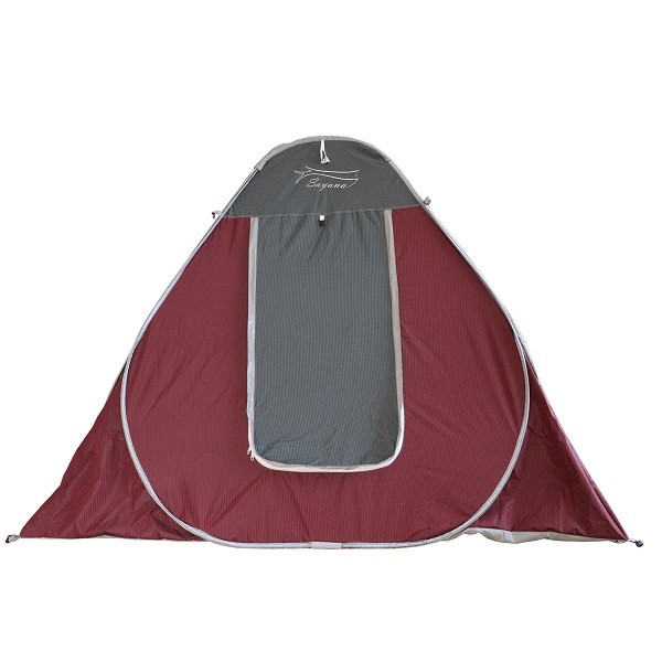 جنس این چادر مسافرتی از پارچه کره ای بسیار ضخیم و با کیفیت به نام برنو است و در واقع یک لایه مشمع ضخیم پشت آنها دیده می شود، فنر ها سفارشی و از نوع بسیار ضخیم می باشند، فنر ها تماما فلزی و ضخیم بوده و از داخل یک لایه نوار پلاستیکی عبور کرده اند، جنس نوار خارجی دور تا دور این محصول ابریشمی است که استقامت بالاتری از پارچه را دارد، سقف و کف این کالا از پارچه ضخیم ساخته شده است و دوخت تمامی قسمت ها دوبل میباشد.ساختار آن از نوع فنری می باشد و به این گونه است که فنر ها از هر چهار طرف به صورت مثلث شکل به یکدیگر اتصال دارند، چهار فنر از چهار سمت باعث شکل گرفتن این کالا میگردند، این کالا گنجایش 4 نفر در حالت نشسته و 2 نفر در حالت خوابیده را دارد. دوخت سقف از رو بوده که باعث شده تا استقامت بهتری در برابر بارش باران داشته باشد درجه 1