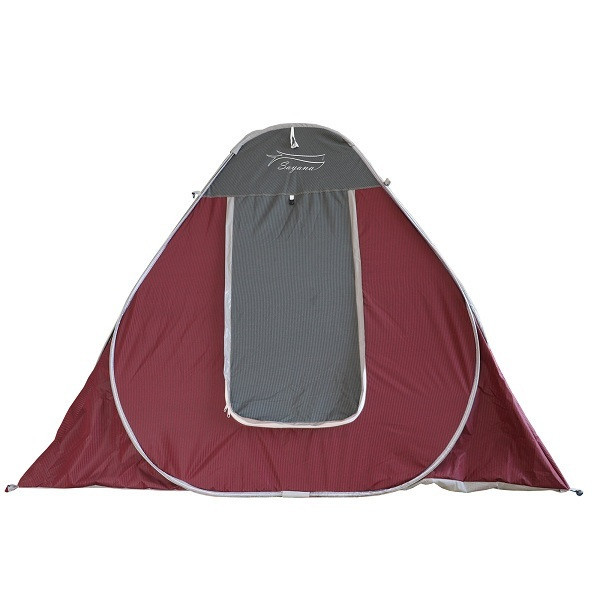 جنس این چادر مسافرتی از پارچه کره ای بسیار ضخیم و با کیفیت به نام برنو است و در واقع یک لایه مشمع ضخیم پشت آنها دیده می شود، فنر ها سفارشی و از نوع بسیار ضخیم می باشند، فنر ها تماما فلزی و ضخیم بوده و از داخل یک لایه نوار پلاستیکی عبور کرده اند، جنس نوار خارجی دور تا دور این محصول ابریشمی است که استقامت بالاتری از پارچه را دارد، سقف و کف این کالا از پارچه ضخیم ساخته شده است و دوخت تمامی قسمت ها دوبل میباشد.ساختار آن از نوع فنری می باشد و به این گونه است که فنر ها از هر چهار طرف به صورت مثلث شکل به یکدیگر اتصال دارند، چهار فنر از چهار سمت باعث شکل گرفتن این کالا میگردند، این کالا گنجایش 8 نفر در حالت نشسته و 4 نفر در حالت خوابیده را دارد. دوخت سقف از رو بوده که باعث شده تا استقامت بهتری در برابر بارش باران داشته باشد ولی 8 گیره دور تا دور این محصول وجود دارد که از بالا و پایین به آن دوخته شده اند، کار این گیره ها از بالا بستن سایبان و از پایین مهار کردن چادر مسافرتی توسط طناب و میخ نگهدارنده است.