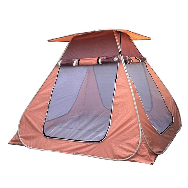 چادر مسافرتی 360 درجه ، تولید شده از جنس برنو ضدآب هست. این محصول دارای چهار درب بزرگ توری دار هست ، که همین باعث میشود شما به عنوان پشه بند هم بتونید از این محصول استفاده کنید. تمام توری ها توسط زیپ باز و بست می شوند. زیپ های درب دو سر زیپ هست و هم از داخل هم از بیرون قابل استفاده هست. روی درب ها چهار پنجره کوچک هم طراحی شده. در قسمت سقف هم یک پنجره توری دار کار شده است. دوخت چادر دولایه هست یعنی پارچه تا شده و از رو دوخت رفته که همین در مقابل رطوبت نفوذناپذیرش میکند. این چادر داری کیف ست و همچنین سایبان ست هم جنس و همرنگ می باشد. ابعاد چادر 250x250 و ارتفاع 210 می باشد مناسب نشستن 8-10 نفر و برای خواب 4-5 نفر می باشد.