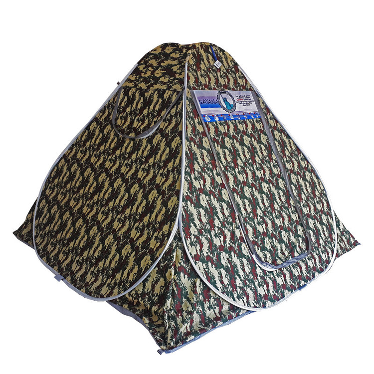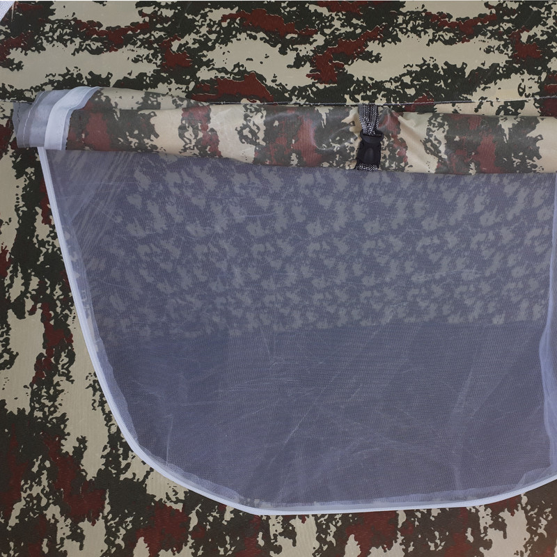 مواد پشت پارچه ضد آب - دارای پشه بند برای درب و تمامی پنجره ها - سه عدد پنجره دارای توری محافظ برای حشرات - نوار ابریشم - کف ضخیم - ابعاد 250x250x200