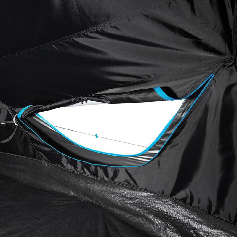 پوش دوم چادر 2Seconds ساخته شده از پارچه 100% پلی استر بوده و در برابر آب تا 2000 میلیمتر مقاوم است. همچنین روکش روی پارچه به گونهای بوده که در مقابل اشعه مضر خورشید با SPF 50 از پوست شما مراقبت میکند. در طرفین پوش دوم و دقیقا مقابل هر پنجره پوش اول پنجرهای طراحی شده که با اتصال گیرههای نصب شده در انتهای پنجره به بندهای چادر میتوانید از نفوذ هوا و نور به داخل چادر لذت ببرید. برای این پوش دوم نیز دربی طراحی شده که تمام زیپ بوده.